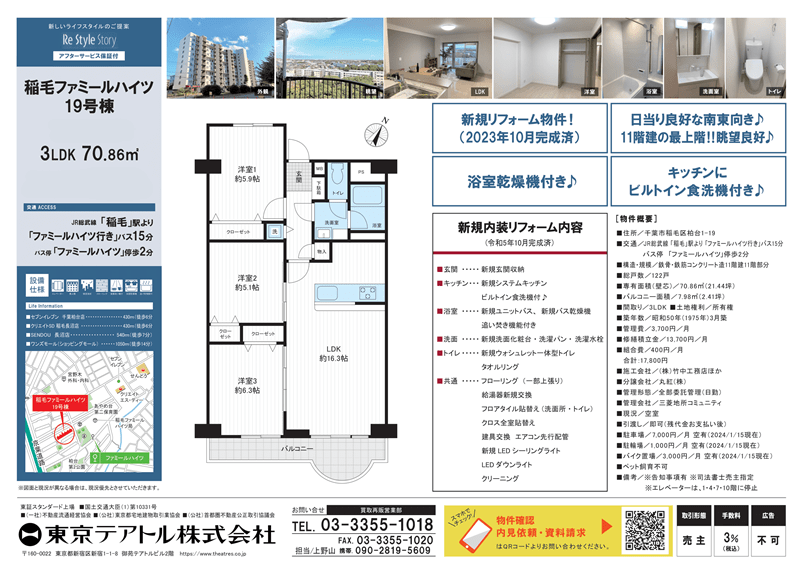 JR総武線稲毛駅バス15分ファミールハイツバス停下車徒歩2分
