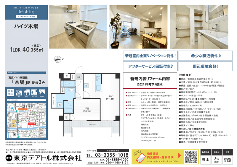 ハイツ木場は、東京都江東区木場に位置し、東京メトロ東西線木場駅から徒歩5分の好立地です。都心へのアクセスも抜群で、通勤・通学にも便利な物件です。周辺には多くの商業施設や緑豊かな公園が点在し、快適で便利な都市生活を送ることができます。また、様々な家庭向け施設が整っており、ファミリー層にも適した住環境です。