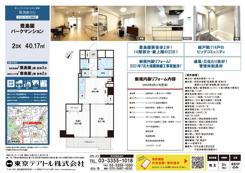 豊島園パークマンションは東京都練馬区に位置し、交通の便が非常に良い場所にあるマンションです。最寄りの西武池袋線豊島園駅から徒歩3分の好立地で、多くの商業施設や公園が周辺にあります。家族連れやシングルの方にも適した物件で、快適な生活環境が整っています。また、近隣には多くの学校があり、子育て世帯にも最適です。