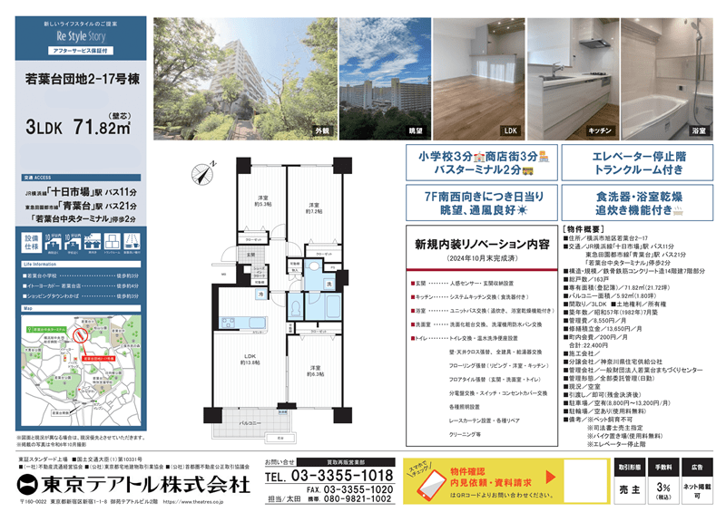 若葉台団地2-17号棟は、神奈川県横浜市旭区に位置する魅力的な物件です。JR横浜線の十日市場駅からバス11分で到着する位置にあります。周辺には緑豊かな公園や教育施設、スーパーマーケットやコンビニエンスストアが充実しており、日常生活に必要な施設が揃っています。住環境は非常に良く、家族連れの方にも安心してお住まいいただける環境です。