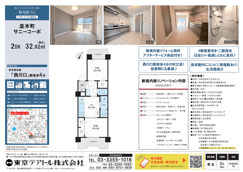 JR京浜東北線西川口駅は、川口市内に位置し、都心へのアクセスが非常に便利です。東京駅まで約30分で行くことができるため、通勤通学にとても便利です。駅周辺には商業施設や飲食店が多く立ち並び、生活に必要なものが揃っています。駅から少し離れると落ち着いた住宅街が広がり、静かで穏やかな雰囲気を楽しむことができます。